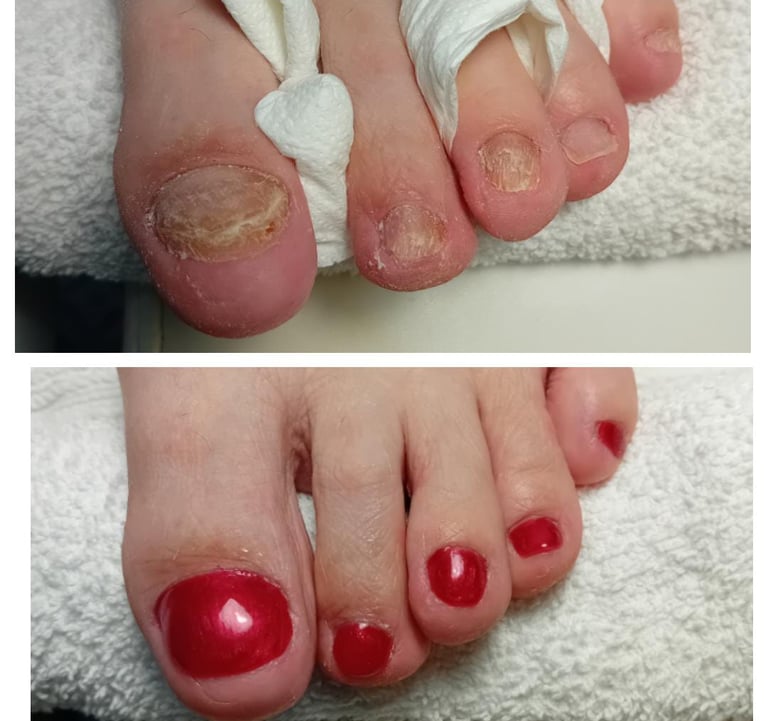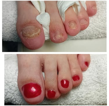 • Bij letsel, nagelschimmel, enz. kunnen we tijdelijk een speciale antischimmelprothese maken. (Max. 10-14 dagen) Ik raad dit alleen aan voor vakanties of speciale gelegenheden.