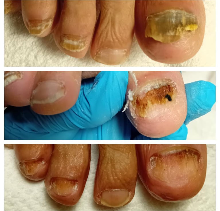 • treatment plan, complete or partial nail removal, cleaning, special brush, medicated cream, consultation